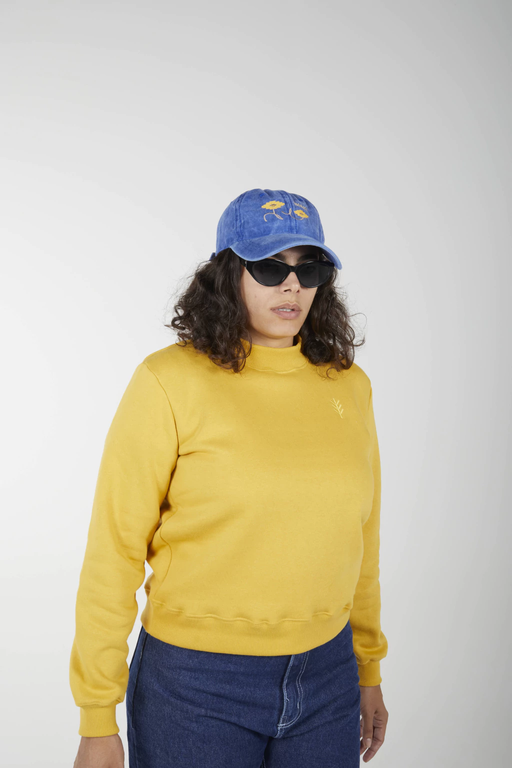 buzo crop de algodon frisado escote redondo con logo bordado al tono