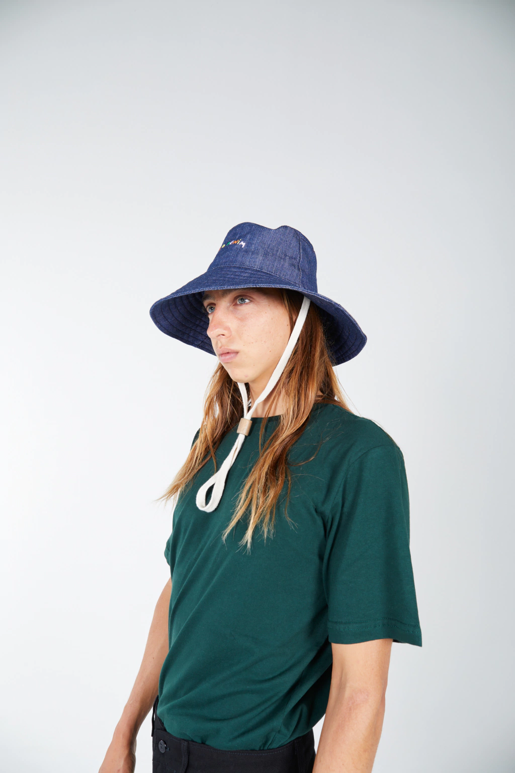 Capelina de gabardina con logo bordado en colores. ajuste para el viento y gran protección del sol :)