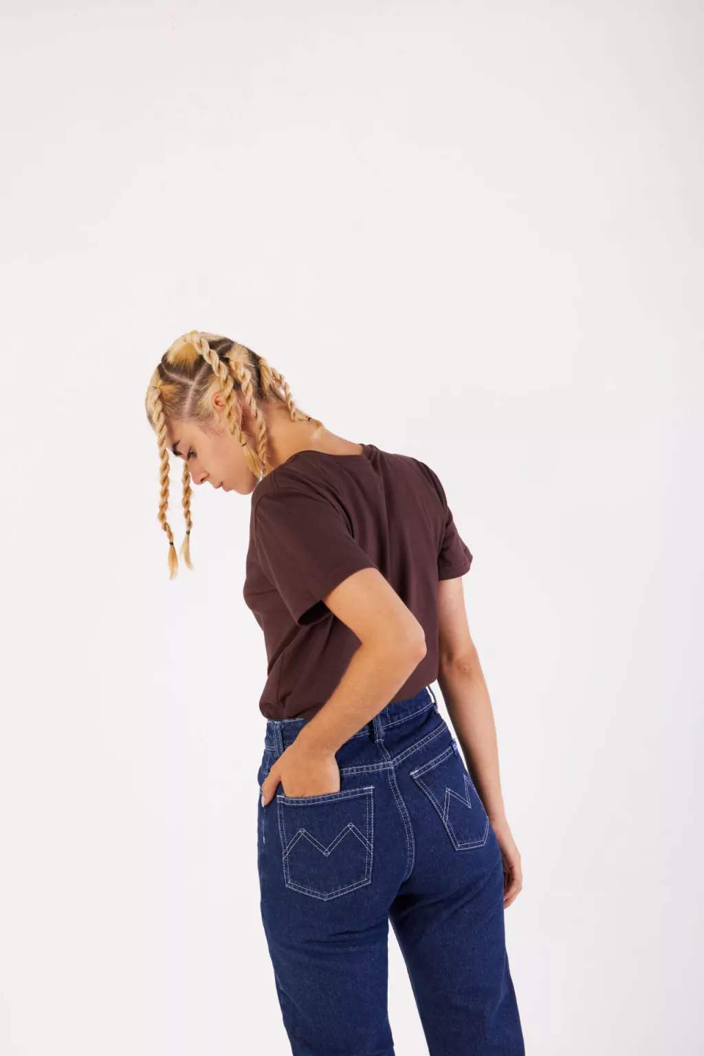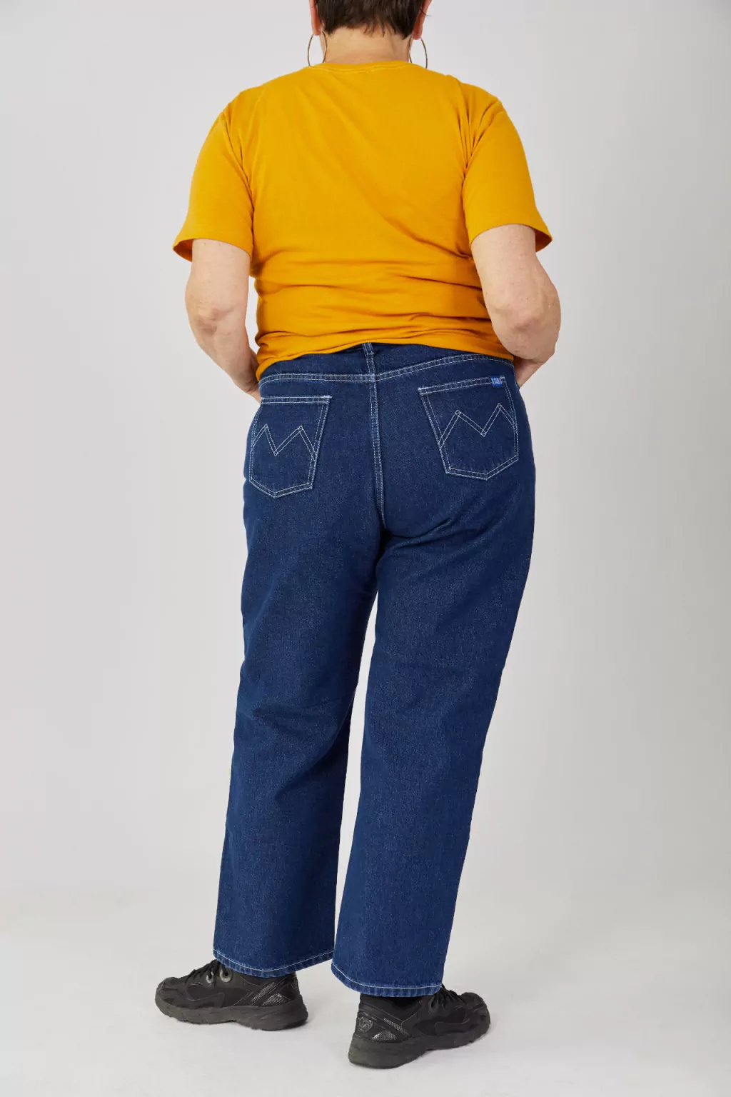 pantalon de denim rígido, 100% algodón, tiro alto, botamanga recta